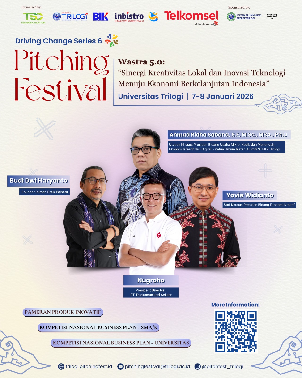 “Saya melihat anak-anak muda di sini punya potensi luar biasa. Oleh karenanya saya sangat berharap teman-teman mahasiswa untuk terus konsisten dalam berkarya serta jangan mudah putus asa”