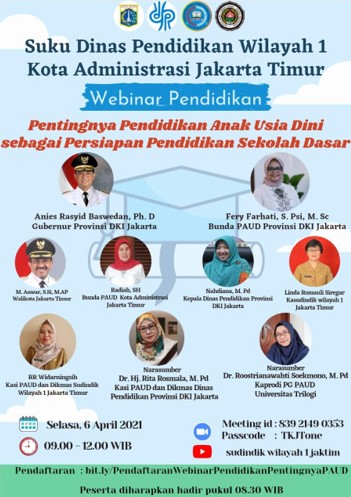 Webinar “Pentingnya PAUD” wilayah I Jakarta Timur Menggandeng Dosen Prodi PG-PAUD